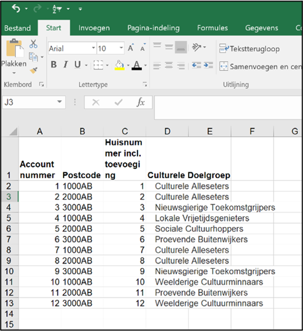 De analyse wordt uitgevoerd op basis van klantgegevens, namelijk postcodes en huisnummers (inclusief toevoegingen, indien van toepassing). Met het Culturele Doelgroepenmodel kunnen alle huishoudens in Nederland worden gekoppeld aan een Culturele Doelgroep.